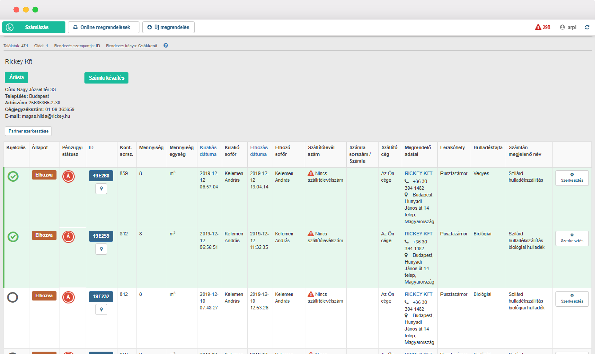 Rendelésfelvétel, fuvarszervezés, számlázás, és minden egyéb, amely a konténeres hulladékszállítás